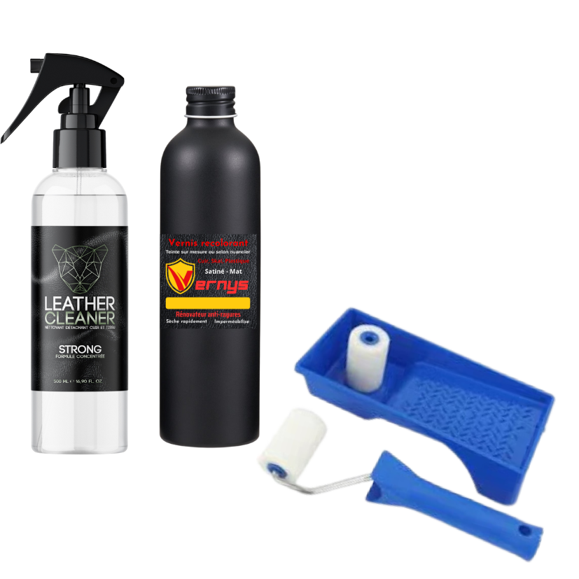 Ce kit est spécialement conçu pour l'entretien et la recoloration du skaï , du similicuir et du cuir.